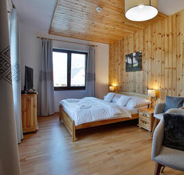 Complex of stylish cottages, guesthouses, apartment house in the spirit of folk architecture of Liptov village. In the resort you will also find a water world with swimming pools (swimming, relaxing, children's) wellness with saunas and floating, whirlpool.