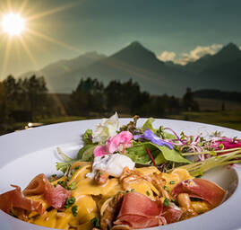 The elegant Hotel International **** offers its guests accommodation in 28 comfortably and stylishly furnished double rooms and 1 suite. During your stay you can enjoy views of the Lomnický Peak and part of the High Tatras ridge, or the green golf course and the Rocky Creek. Peace, quiet and clean nature in the area will ensure you perfect relaxation, focus on the game or undisturbed sitting with friends. We invite you to a unique hotel of its kind in the Tatras, also in Slovakia.